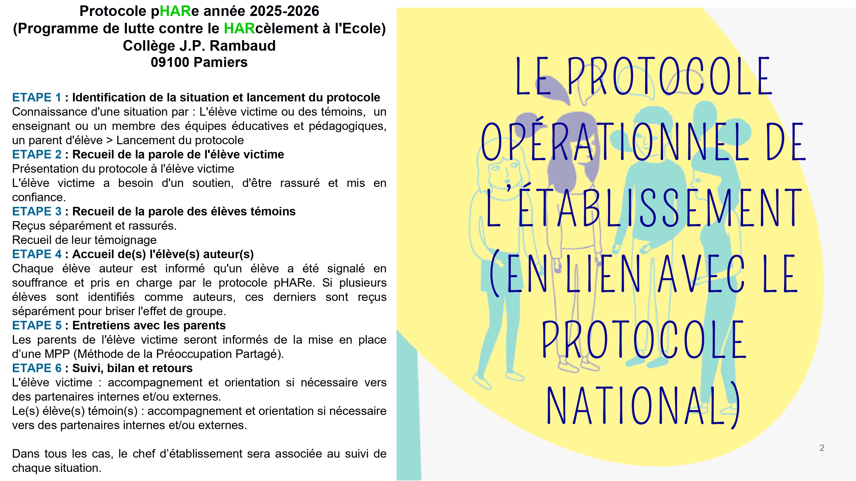 Actions et/ou informations pour les parents