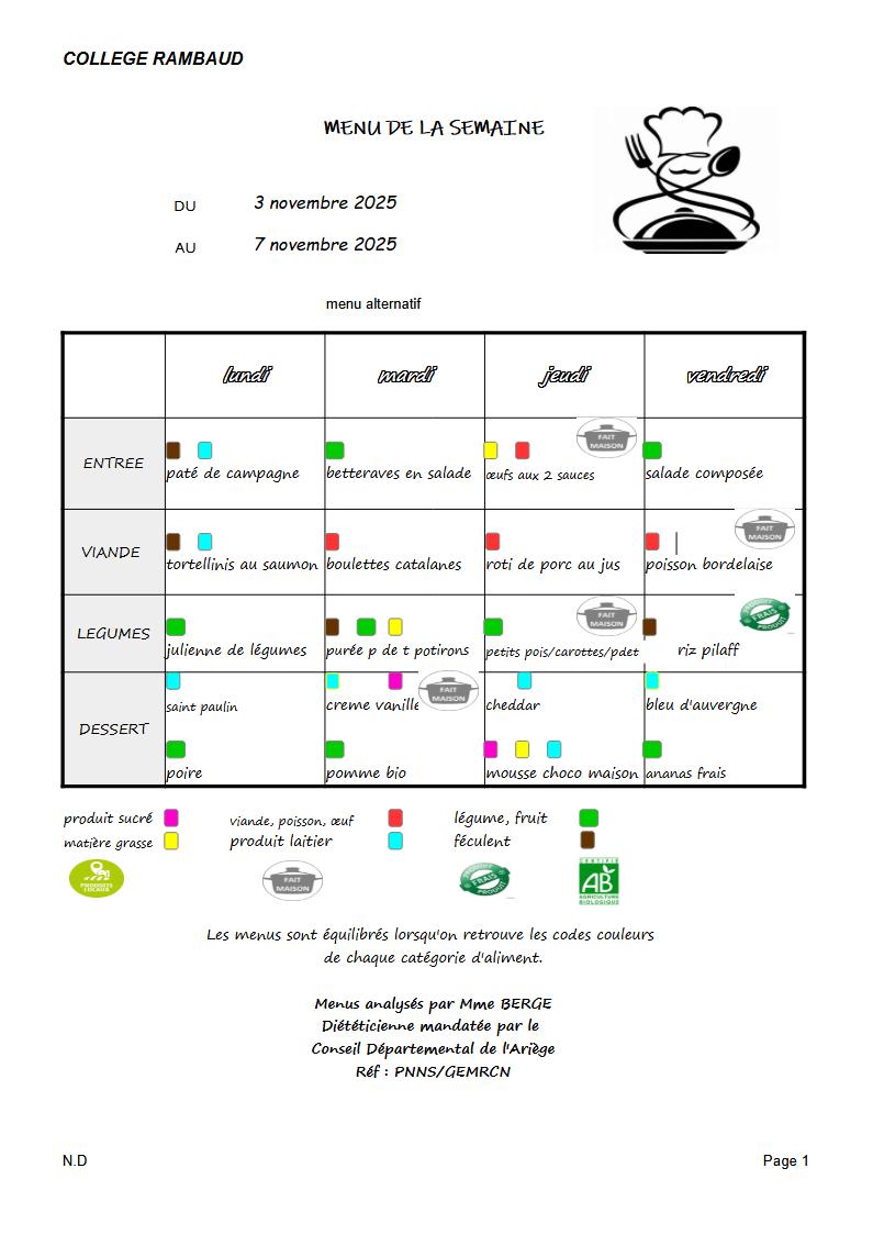 Les menus de la semaine en cours et à venir